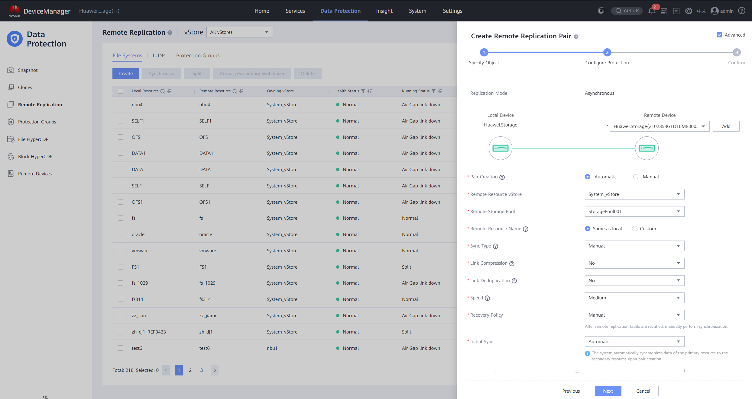 (Optional) Firewall | Restricts the communication of non-replication ports. A firewall is recommended when replication links are not in point-to-point connections or pass through public network links. | Production zone | A firewall restricts the communication of non-replication ports only and is not for enabling or disabling replication ports. In deployment, the replication link traffic needs to be evaluated to prevent the firewall from becoming a bottleneck. |