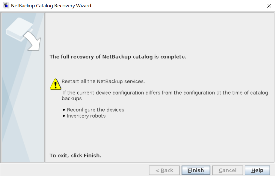 Step 2 In the left navigation pane, right-click Catalog and choose Recover NetBackup Catalogs from the shortcut menu. The wizard for importing catalog files is displayed.