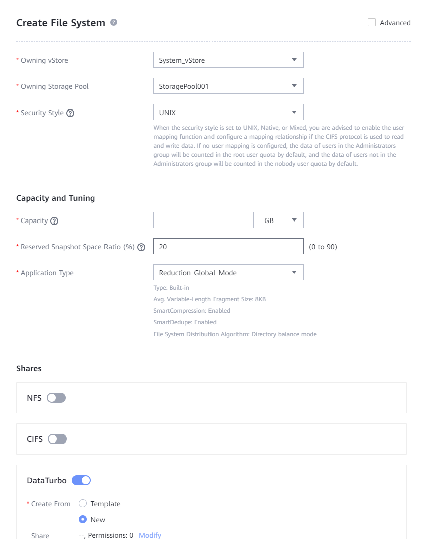 - High reduction ratio mode: Set Compression mode of the storage pool to High reduction ratio and the file system application type to Reduction_Prioritized_Mode_enhanced.