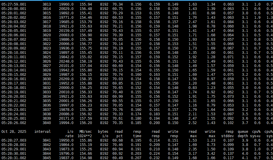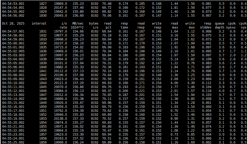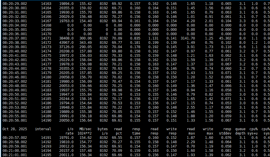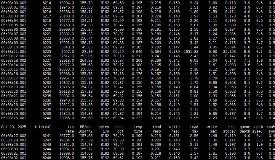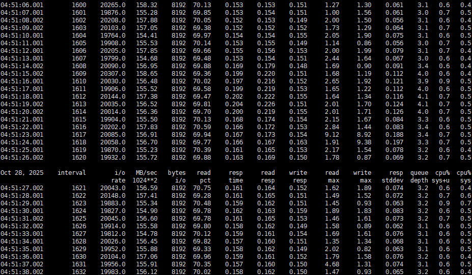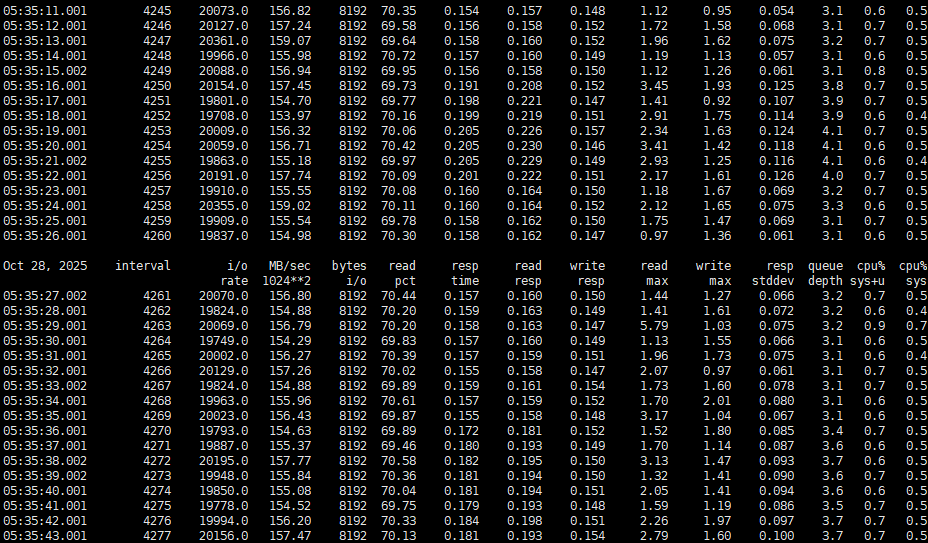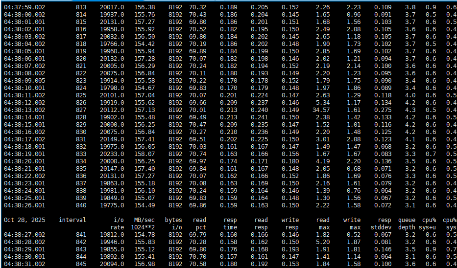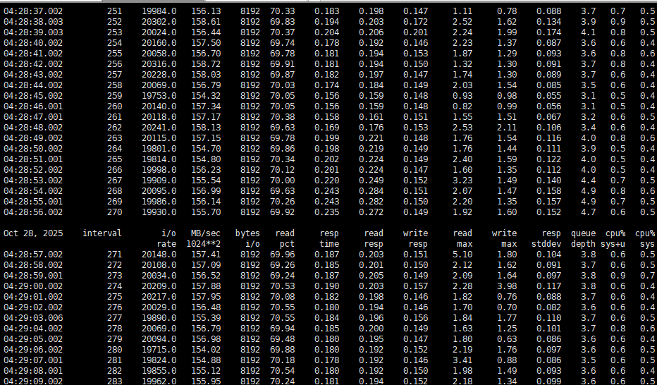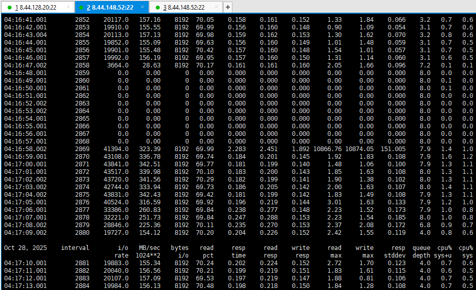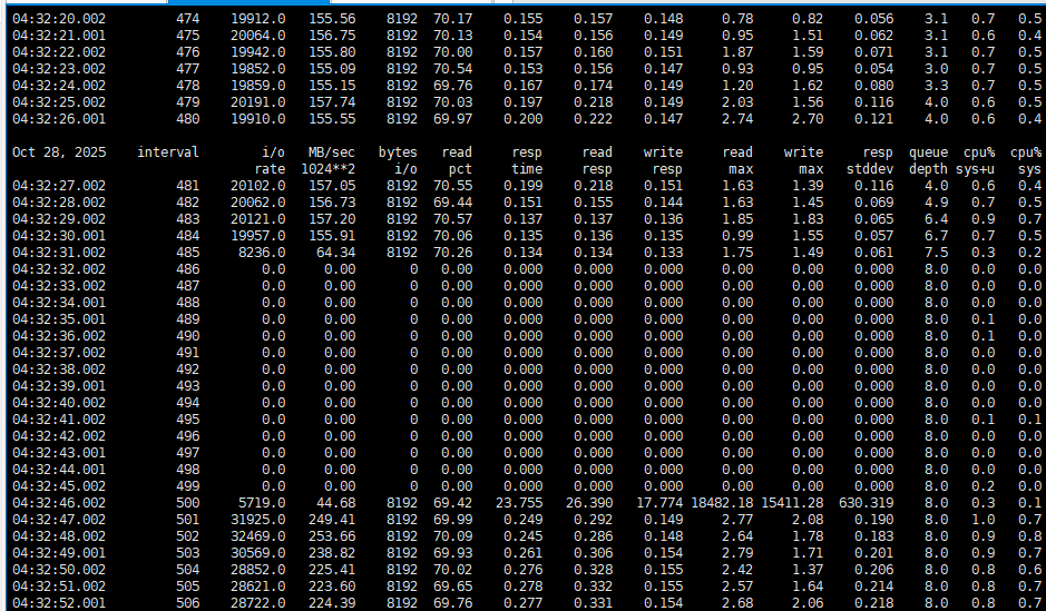 2. Step2, the Vdbench IO fluctuation/reset status has been recorded       3. Step3, the environment can return to normal       Throughout the entire test process, Vdbench runs without interruption |