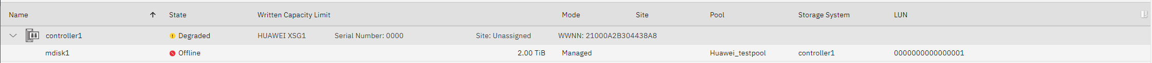 SVC uses the WWNN of OceanStor Dorado V700 as the unique identifier of a controller. An OceanStor Dorado V700 storage system reports only one WWNN (not the WWPN of a Fibre Channel port), which is identified as a controller on IBM SVC.