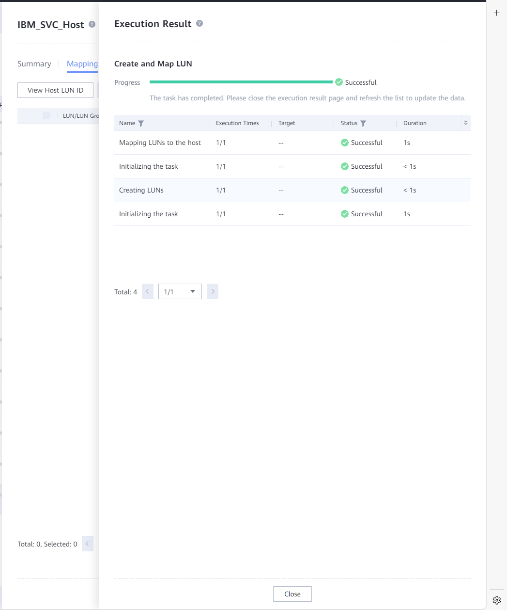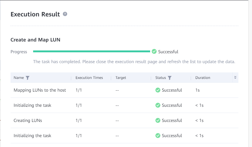 3. In step 3, no errors are reported during scanning, and the LUNs mapped by Huawei storage are successfully detected on the gateway storage   4. In step 4, the capacity of the detected LUNs on the gateway storage is consistent with that on Huawei storage DeviceManager  |