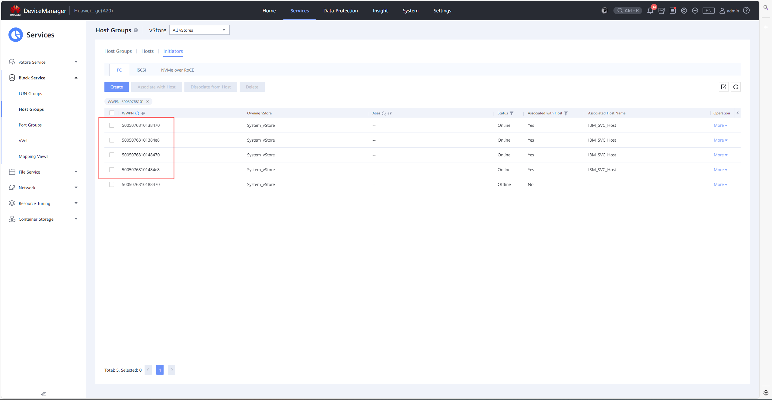 2.1 Scan initiators from IBM SVC on Huawei storage