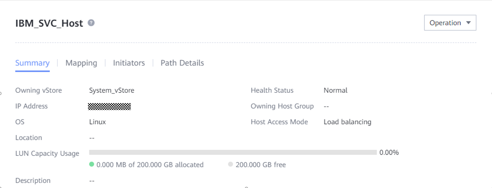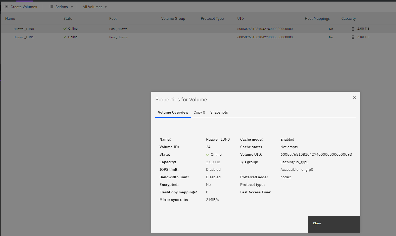After volumes are created on IBM SVC, Cache mode is Enabled by default. OceanStor Dorado V700 is an all-flash storage system. According to the best practices of IBM SVC, you are advised to set Cache mode to Disabled