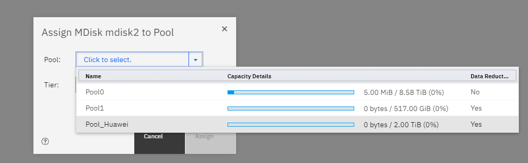 When adding the MDisk to a pool on IBM SVC, you can select Flash, Enterprise, or NearLine for Tier based on service requirements. This parameter is for the Easy Tier function (similar to SmartTier of Huawei storage) of IBM SVC. When an OceanStor Dorado all flash storage system is used, select Flash.