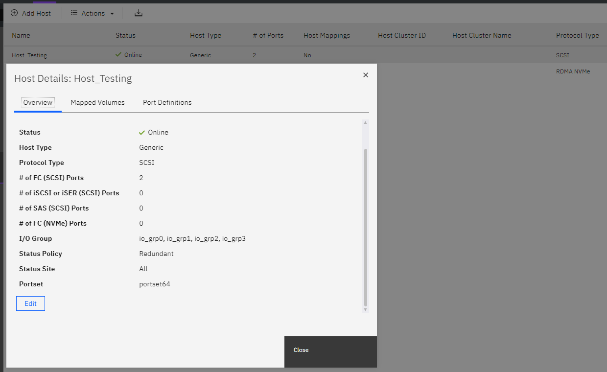 2.5 Create a host with the initiators from the test server on IBM SVC