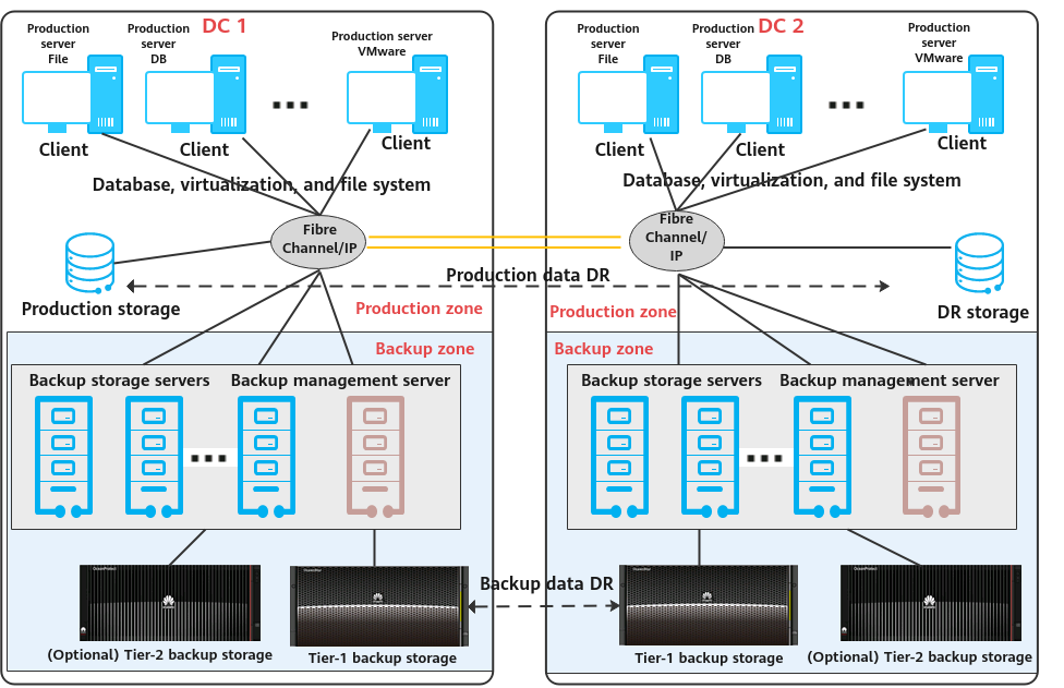 - Different tiers correspond to different LTR policies of backup data. When a large amount of application data must be retained for a long time, customers usually use capacity storage as the level-2 backup device to reduce costs.