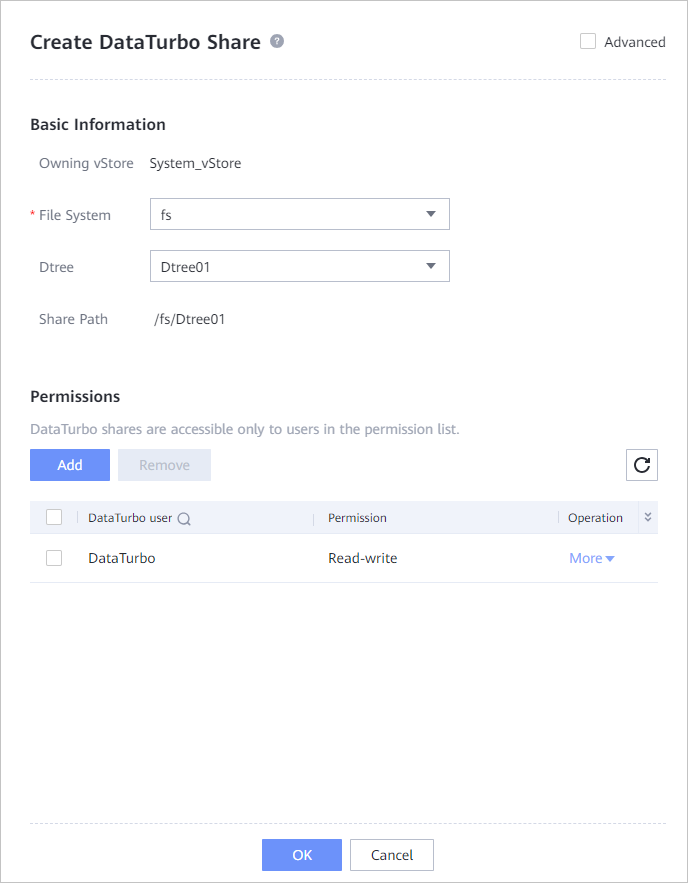 Step 4 Click Advanced. On the Storage tab page, deselect Enable inline data deduplication (recommend) to disable the deduplication function of the backup software. Set Compression level to None to disable the compression function of the backup software. Click OK. Perform subsequent operations as prompted.