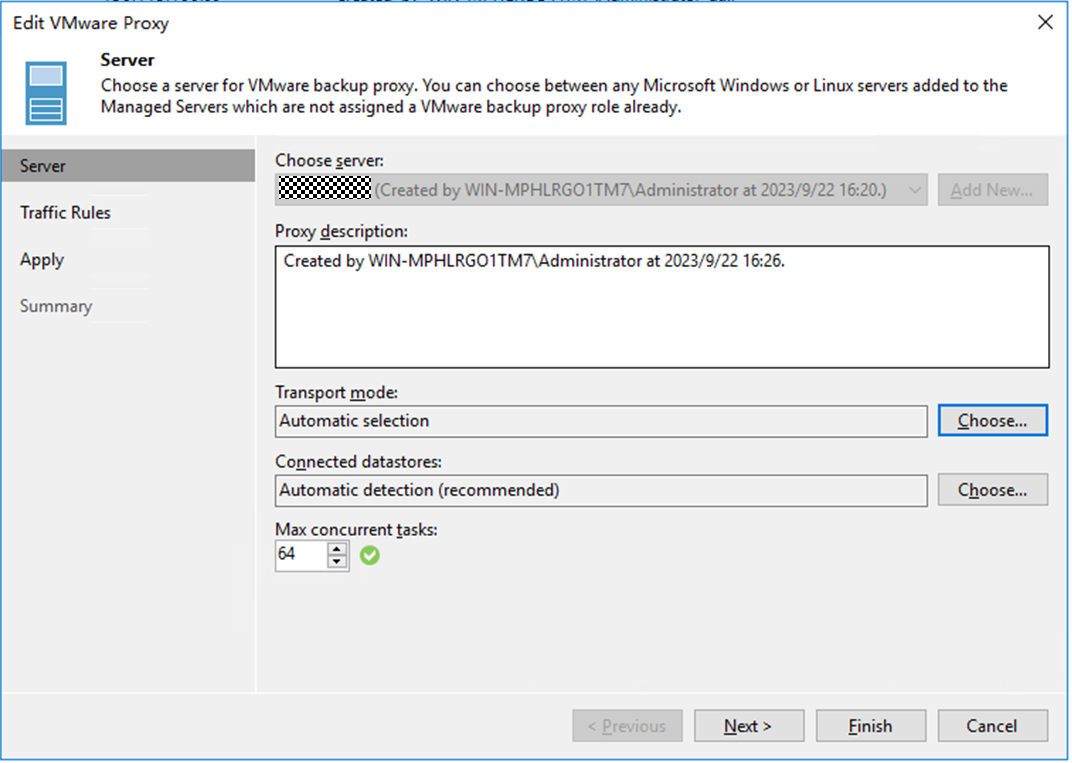 - Backup proxy: It operates as a data mover that transfers data between the source file and the backup repository. It also processes backup jobs and delivers backup and restoration traffic. For VMware backup, if the hot-add transmission mode is used, VMs must be used as backup proxies.