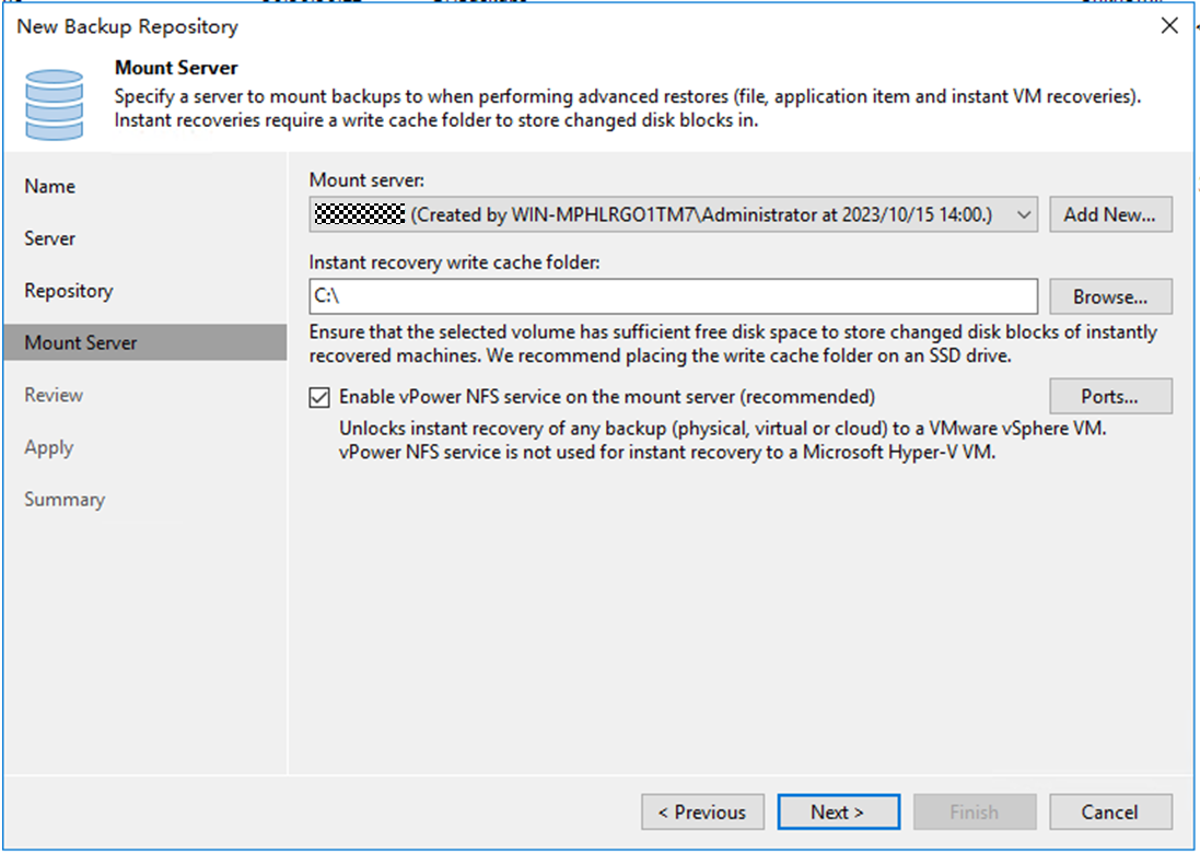 - Veeam backup repository: Each mount point is configured as an independent backup repository.