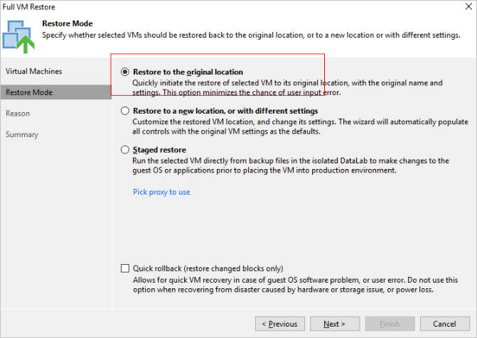 Step 1 Find the VM copy that has been backed up, right-click it, choose Restore entire VM from the shortcut menu, and click Next.