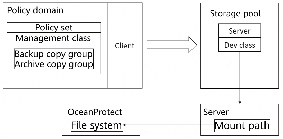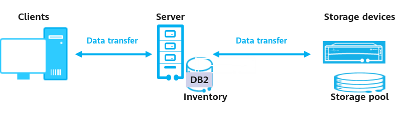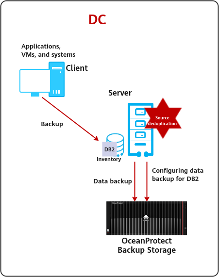 - Backup agent client: is installed on protected application production servers and VMs, responds to backup job scheduling by the backup management server, collects and manages data to be protected, and transfers the data to the backup storage server.