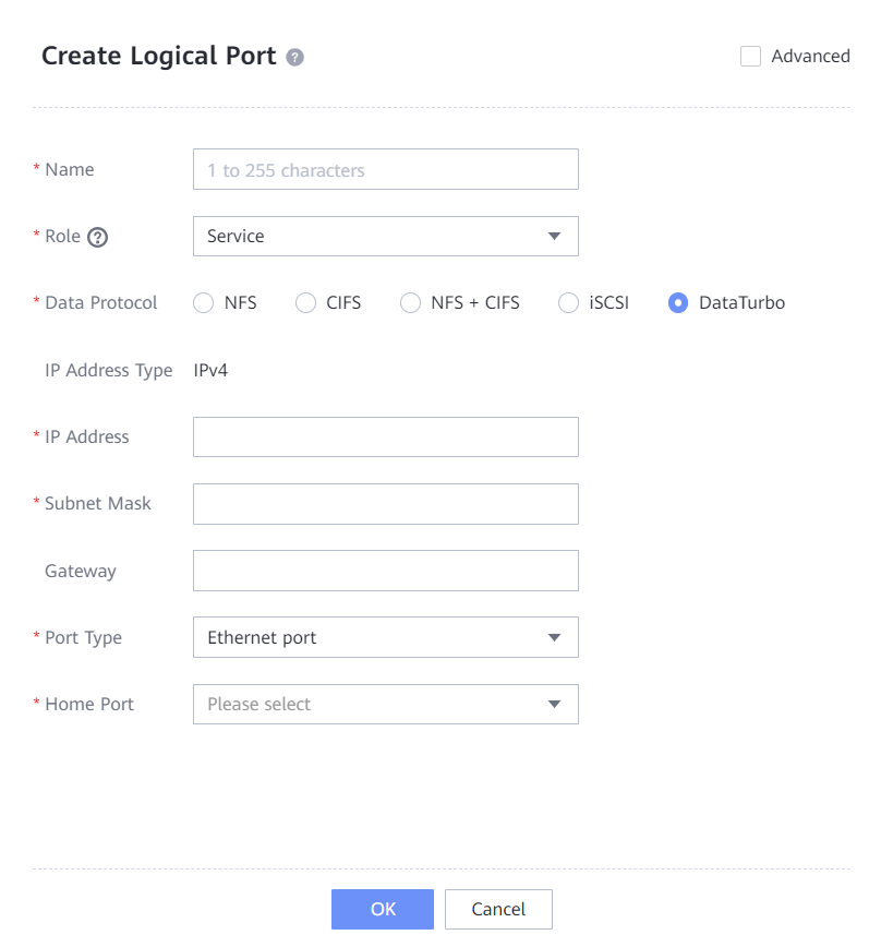 Step 3 Select All vStores for vStore. Click Create. On the Create Logical Port page that is displayed, set Role to Replication and enter key information such as the IP address.