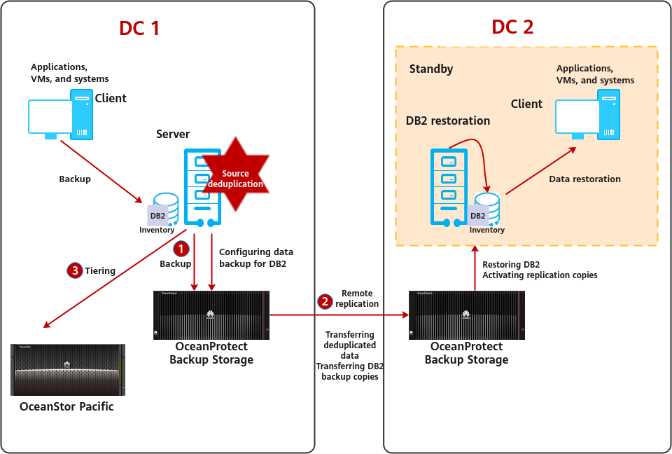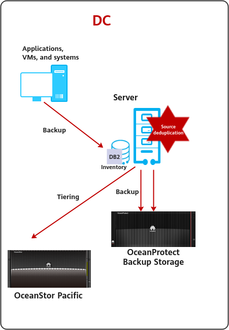 The backup storage solution based on Huawei OceanProtect backup storage integrating IBM Spectrum Protect can be used to back up application systems, replicate backup copies, and implement LTR-based tiering.