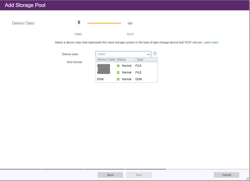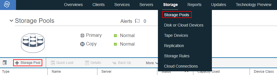 - IBM Spectrum Protect supports the following types of storage pools as backup media: directory-container storage pool, cloud-container storage pool, random-access storage pool, and sequential-access storage pool (including DISK and FILE device types).
