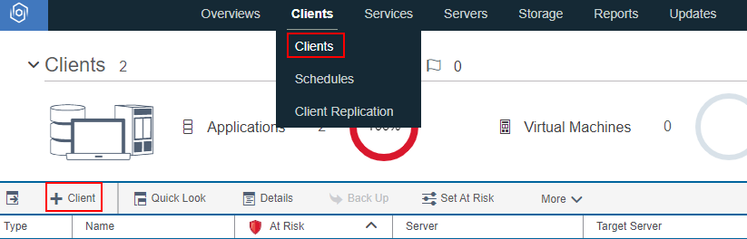 Clients are applications, VMs, and systems that must be protected. The clients send data to the server.
