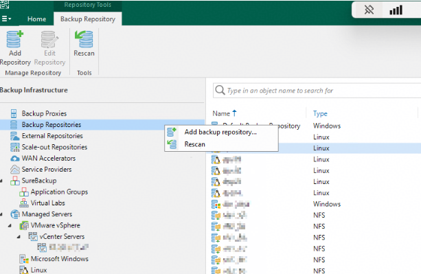 - Veeam backup repository planning: A total of six Veeam backup repositories are configured on Veeam.