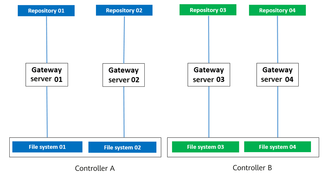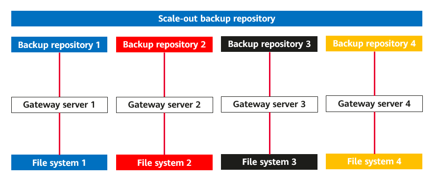 - Veeam backup scale-out: The Data locality mode is configured. The repositories in each scale-out repository correspond to the file systems on the same controller.