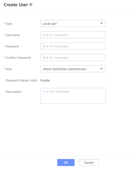 - If the backup software integrates with the OceanProtect Backup Storage through the DataTurbo protocol, a DataTurbo administrator can be created only under the default vStore System_vStore. For this reason, this solution does not apply to multi-vStore scenarios.