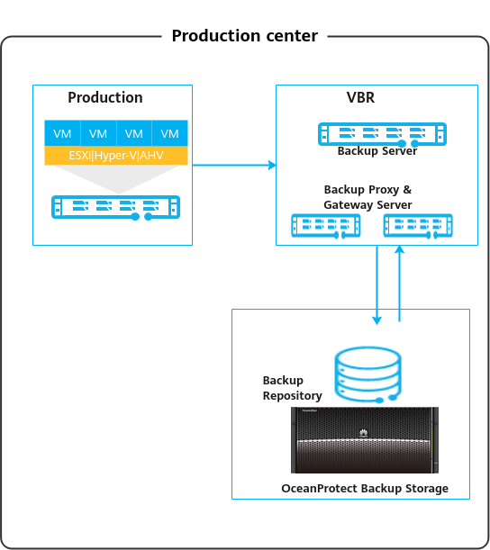 - Gateway server: It connects the production system and storage backend. Generally, the backup proxy also functions as the gateway server. In Hot-Add transmission mode, the backup proxy is a VM. Therefore, a physical host is used as the gateway server.