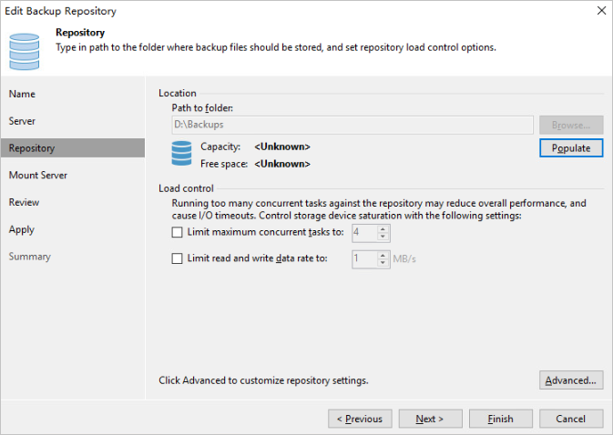 On the Veeam backup server, add the OceanProtect Backup Storage as the backup storage (backup repository).