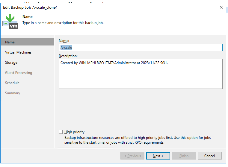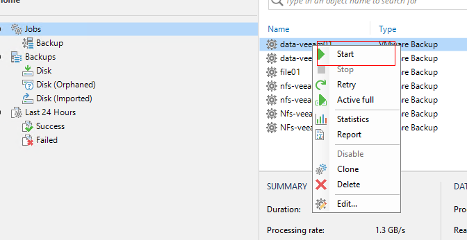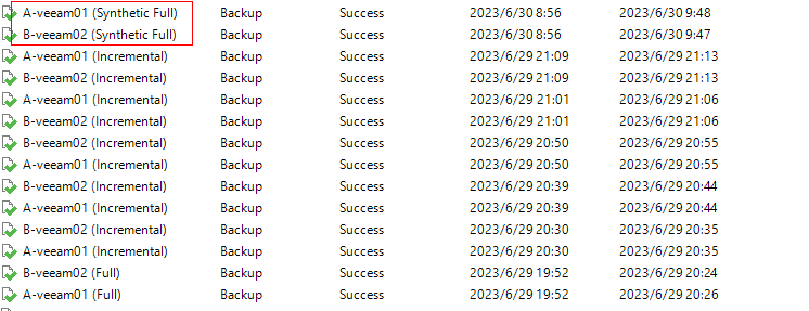 - Veeam job configuration: All VMs to be backed up are evenly distributed to four backup jobs, and data is backed up to the two different backup repositories.
