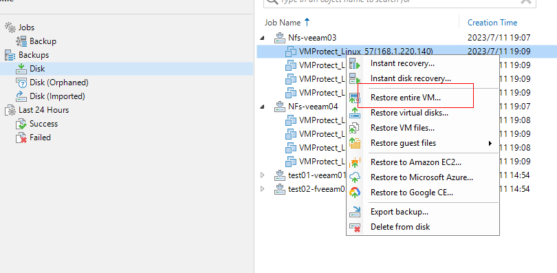 The deduplication function of backup media is recommended because backup storage has excellent deduplication and compression performance. The active full or synthetic full backup mode can be used in a Veeam backup policy. You can directly perform restoration based on backup jobs or use the instant recovery capability.
