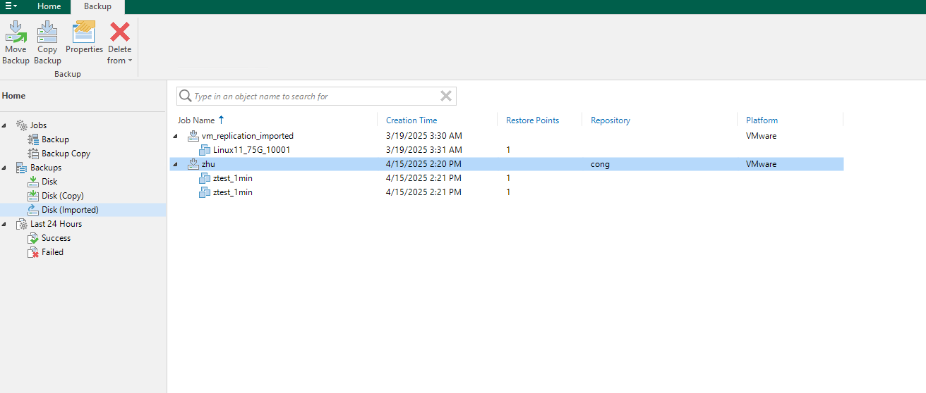 - Veeam backup repository: Each bucket is configured as an independent backup repository. A total of two backup repositories are configured.